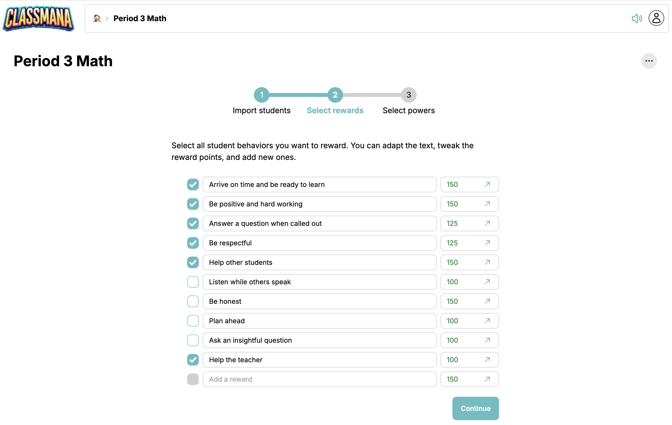 Oroa dig inte för att få belöningar perfekta nu. Du kan lägga till, redigera eller ta bort belöningar när som helst från klassinställningar.
